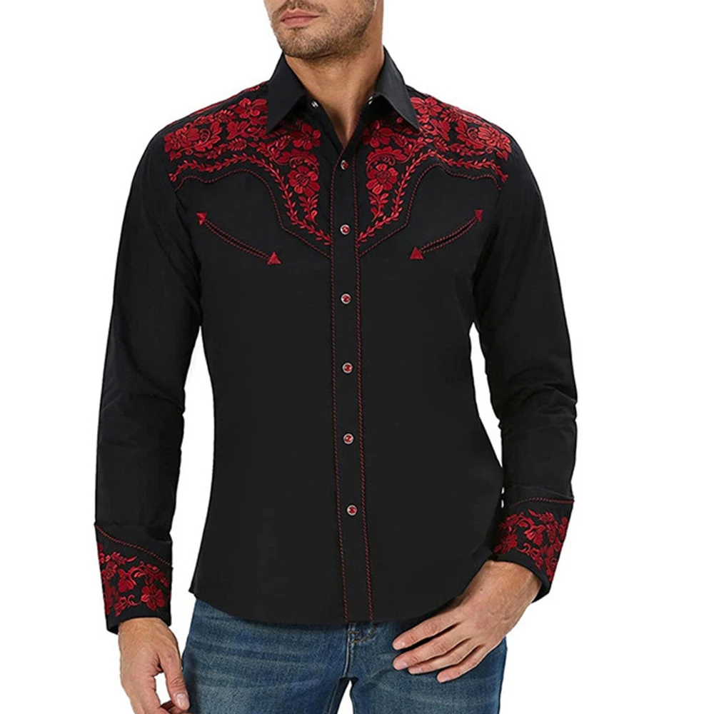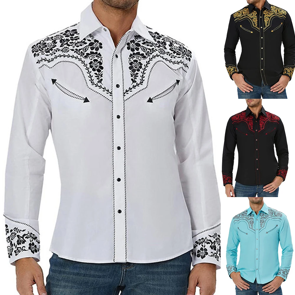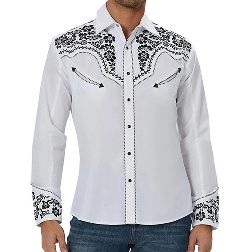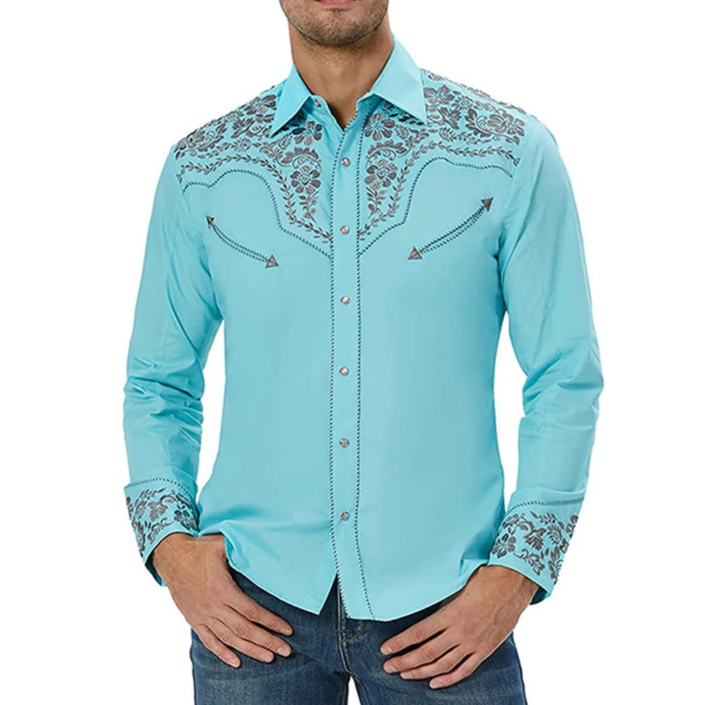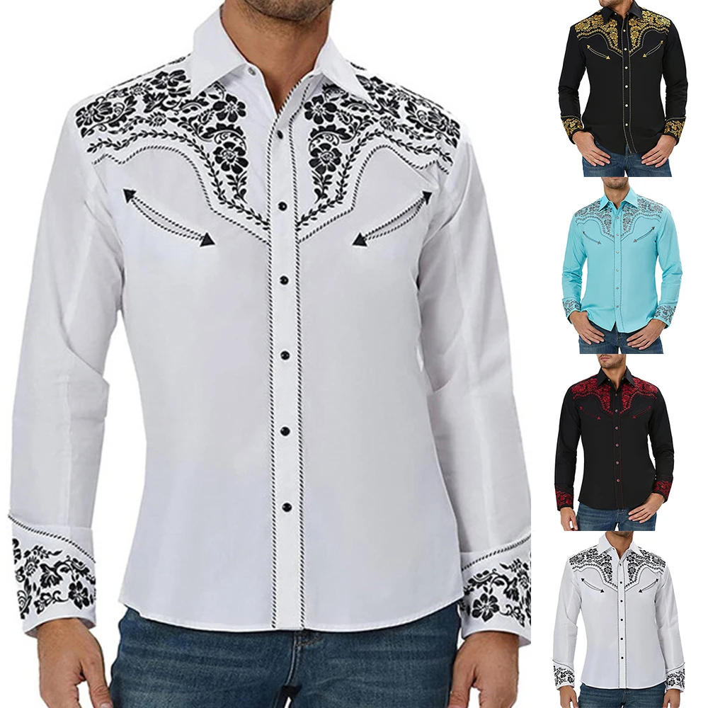 * Item Description:️Fashion Men Western Printed Long Sleeve Shirts Casual Loose Slim Button Down Dress Shirt Blouse Tops
