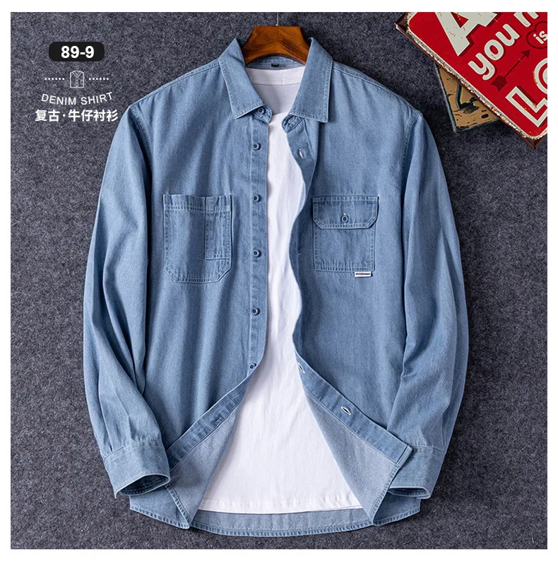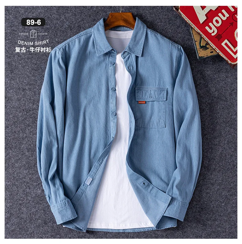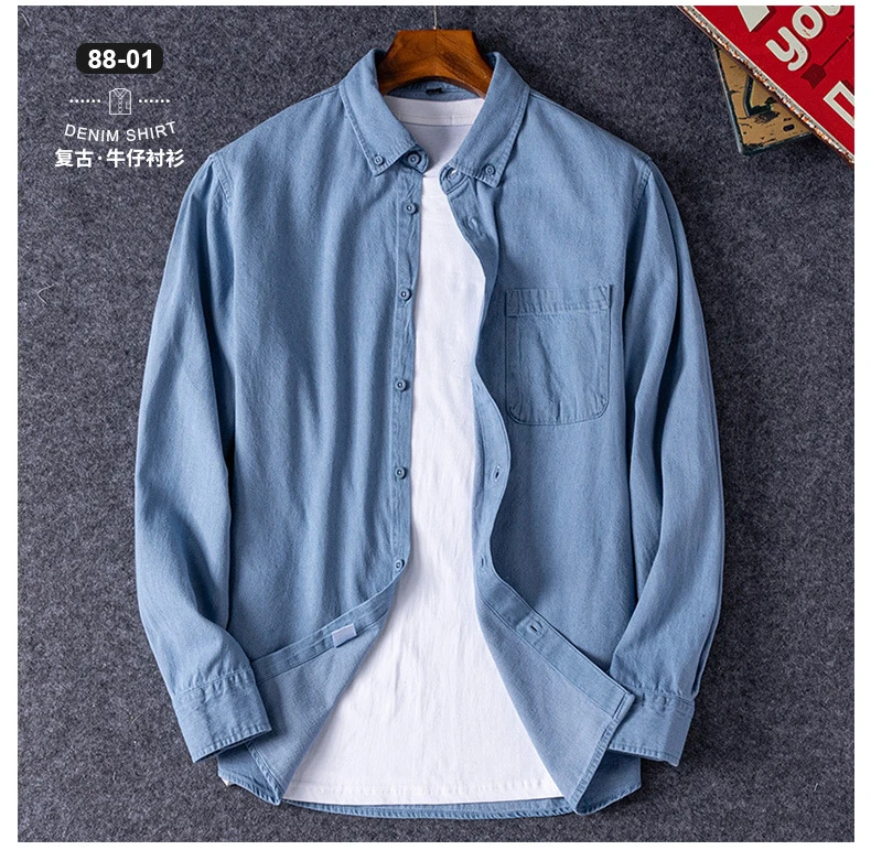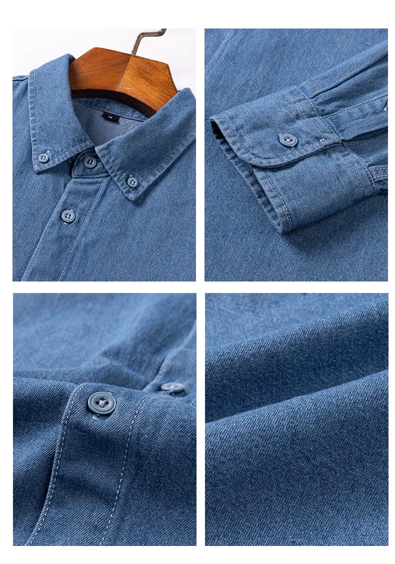 Spring newBrand Elastic Cotton Denim Shirt Men Long Sleeve Quality Cowboy Shirts for Men Casual Slim Fit Mens Designer Clothing