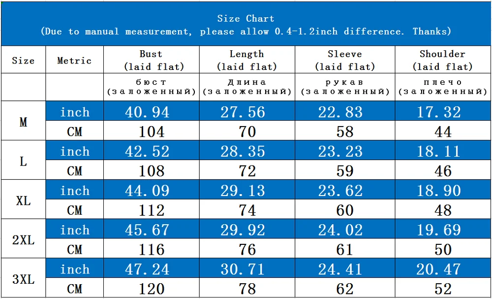 1.This is an Asian size, which is 2-3 yards smaller than the EU/US size. If you wear EU/US size M, you can choose our size XL, hand-measured, please allow 1-3 cm difference, even if it is the same color, different computers will display different colors. Please allow reasonable color difference.
